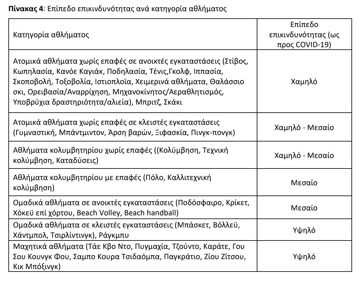 3. Τον πίνακα επικινδυνότητας αθλημάτων