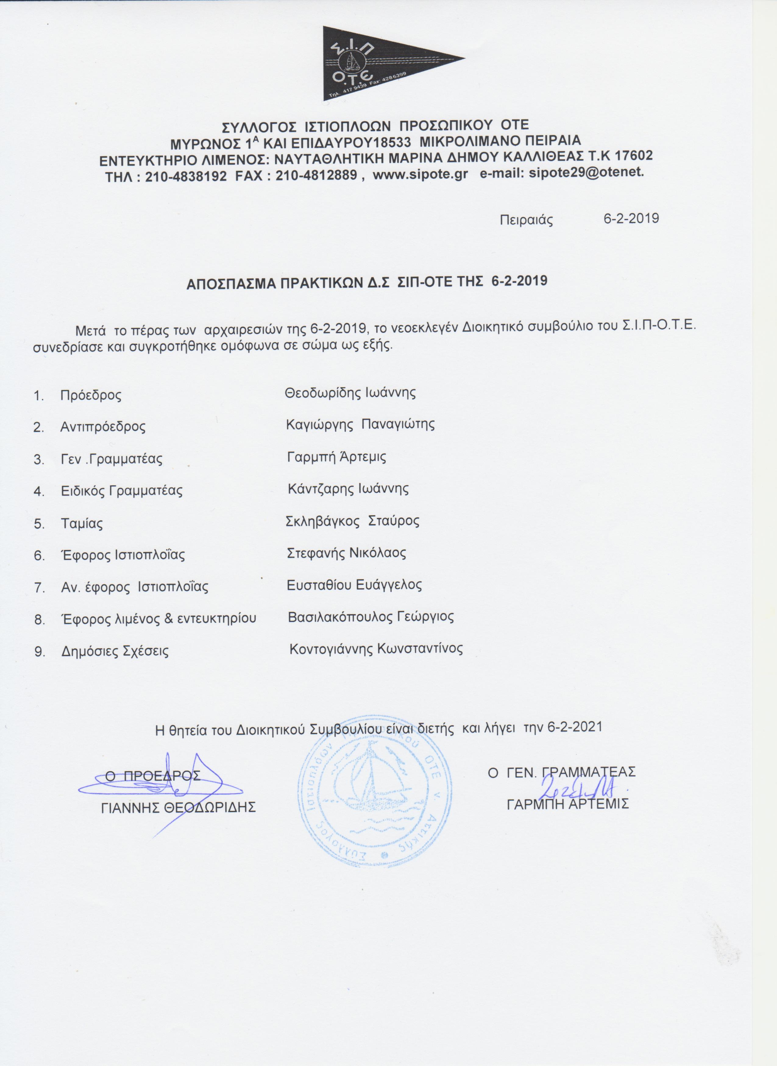 Νέο Δ.Σ Ναυτικού Ομίλου Τήνου