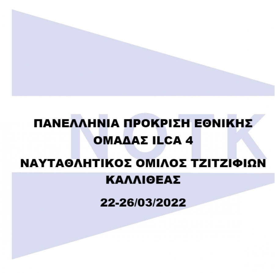 Η Πανελλήνια Πρόκριση Εθνικής Ομάδας ILCA 4 για το 2022 θα διεξαχθεί από το Ναυταθλητικό ‘Ομιλο Τζιτζιφιών Καλλιθέας, από 22 έως και 26 Μαρτίου 2022.
