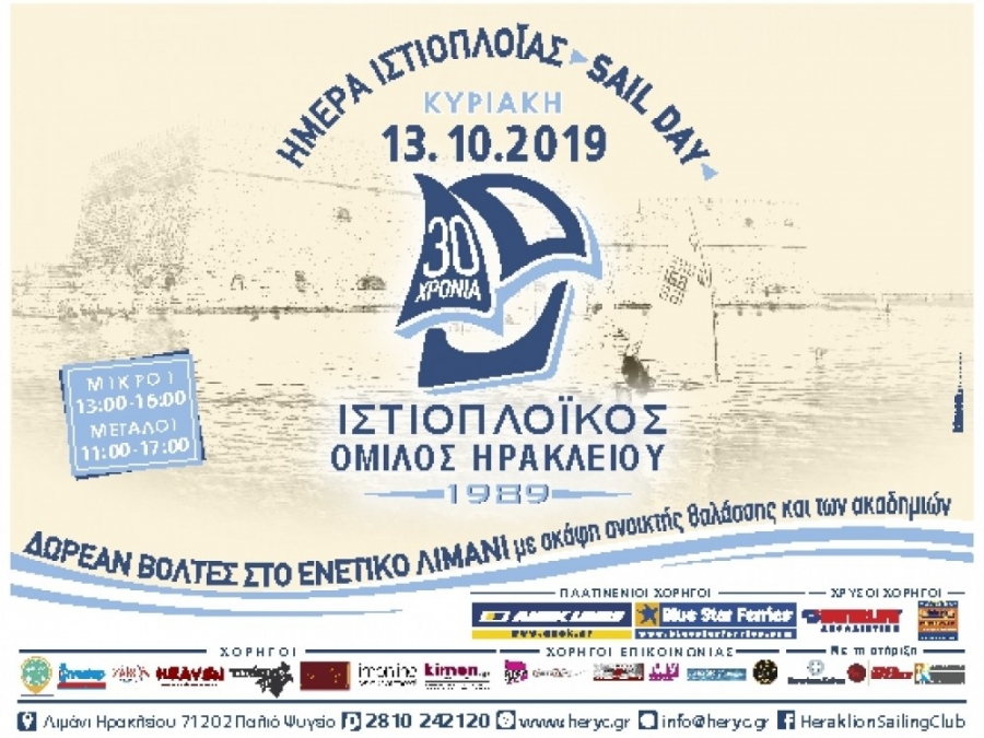 Με απόλυτη επιτυχία & μεγάλη συμμετοχή πραγματοποιήθηκε και φέτος, την Κυριακή 13 του Οκτώβρη, η εκδήλωση SAIL DAY / ΗΜΕΡΑ ΙΣΤΙΟΠΛΟΊΑΣ ΓΙΑ ΟΛΟΥΣ του Ιστιοπλοϊκού Ομίλου Ηρακλείου. Από τις 10:30’ το πρωί μέχρι τις 6 το απόγευμα…πλήθος κόσμου , Μεγάλοι & Μικροί, έσπευσε να κατέβει στο λιμάνι για να πάρει μια δυνατή γεύση Ιστιοπλοΐας !!!