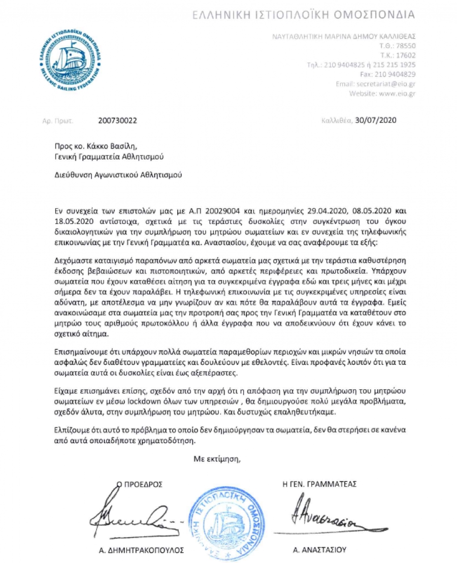Στην επιστολή επισημαίνεται ότι πολλά σωματεία παραμεθόριων περιοχών και μικρών νησιών τα οποία ασφαλώς δεν διαθέτουν γραμματείς, έχουν ακόμα μεγαλύτερες δυσκολίες για τη συμπλήρωση του μητρώου.