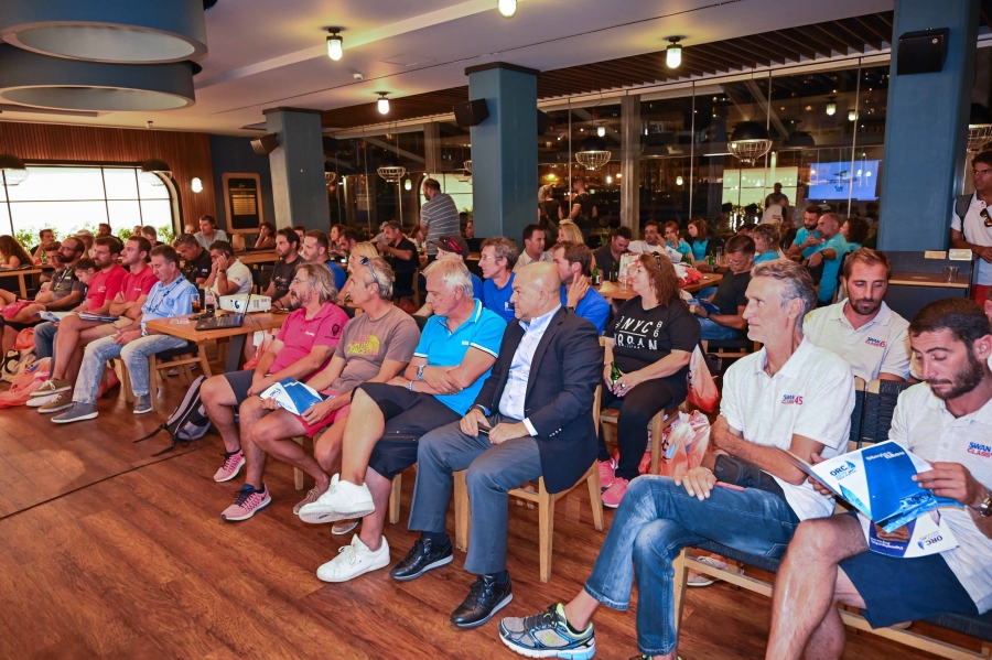Η συγκέντρωση των κυβερνητών έγινε στο εντευκτήριο του ΙΟΠ και στους ιστιοπλόους μίλησε ο Πρόεδρος του Ιστιοπλοϊκού Ομίλου Πειραιώς Γιάννης Παπαδημητρίου. «Σας καλωσορίζω στον Όμιλο μας και σας εύχομαι να έχετε ένα καλό πρωτάθλημα. Εμείς έχουμε δημιουργήσει όλες τις προϋποθέσεις ώστε το Πανελλήνιο να είναι επιτυχημένο, ενώ έχουμε βάλει ικανά στελέχη με πολλές γνώσεις, στην επιτροπή αγώνα, την επιτροπή ενστάσεων και την τεχνική επιτροπή ώστε όλα να λειτουργήσουν ρολόι. Ο Όμιλος είναι ανοιχτός για όλα τα πληρώματα και κάθε μέρα μετά τις ιστιοδρομίες θα κάνουμε και μία μικρή γιορτή». Χαιρετισμό απηύθυνε και ο Πρόεδρος της Επιτροπής Ανοιχτής Θαλάσσης της Ελληνικής Ιστιοπλοϊκής Ομοσπονδίας Ακης Τσαλίκης.